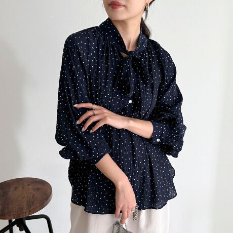 ハートドットボウタイブラウス