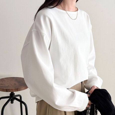 落ち感のある素材なので、広がりすぎずすっきり見えます◎
