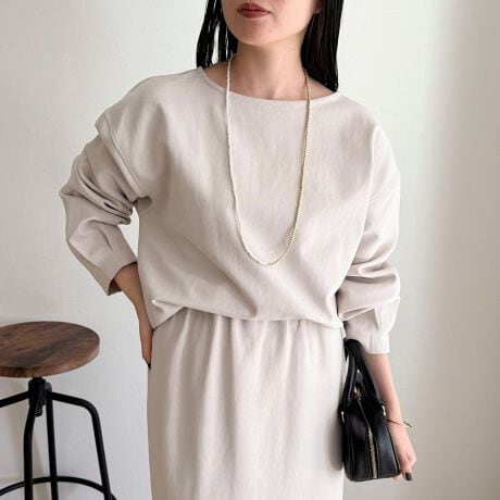落ち感のある素材なので、広がりすぎずすっきり見えます◎