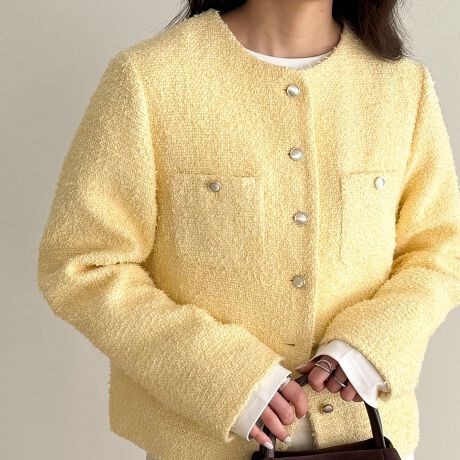 ・華やかな素材感が魅力のツイード素材を使用したノーカラージャケット