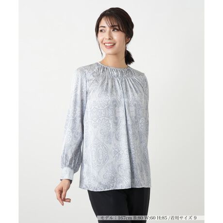 ペイズリー柄ギャザーブラウス【Leilian WHITE LABEL】