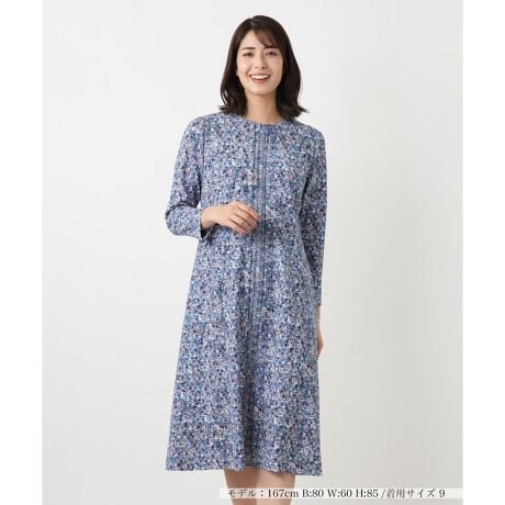 ミックスカラーのツイード調デザインが目を惹くワンピースです。 身体のラインを拾いすぎない絶妙なAラインシルエットが、女性らしいエレガントな立ち姿を演出。メインに伸縮性のあるニット素材を使用しているため、見た目のきちんと感とは裏腹に、リラックスして過ごせる快適な着心地を実現しています。フロント中央にはあえて伸縮性を抑えた織地を配し、繊細なピンタックを施すことで縦のラインを強調。袖口にはスリットを入れ、手元をすっきりと見せる抜け感をプラスしました。背中はファスナー仕様で着脱もスムーズです。