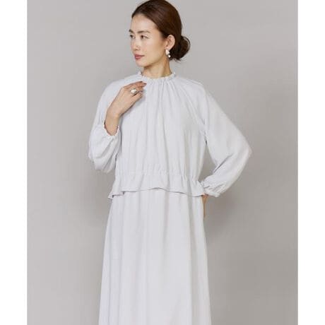 ■デザインギャザーを効かせたディテールが豊かな表情のワンピース。ペプラムのフリルがさりげないアクセントに。襟元には華奢なフリルをあしらい、顔まわりを上品に華やかに演出します。ラグランスリーブで肩のラインをすっきり見せつつ、ウエスト切り替え部分はゴム仕様にすることで、ストレスフリーな着心地を叶えました。■素材上質なジョーゼット組織で、マットな表面感が上品な印象を与える素材です。薄手で適度な反発感と程良いドレープ感があり、美しいシルエットを生み出します。ソフトな肌触りと、軽くしなやかなストレッチ性が着心地の良さを叶えます。華奢で上品なギャザーディテールを演出する素材です。・水洗い可・ポケットあり・裏地あり・後ろファスナーあり■サンプル撮影商品画像の商品はサンプルです。実際の商品とはサイズや色味、素材、デザイン等の仕様が若干変更になる場合がございます。■カラーについては、可能な限り実際の商品に近いカラーで撮影をおこなっておりますが、照明の関係により実際の製品とは色味が違って見える場合があります。またパソコン・スマートフォンなどの環境により、若干製品と画像のカラーが異なる場合もございます。現物と画像のカラー差異については返品理由となりませんので、予めご了承ください。■サイズ表記はあくまで目安となります。