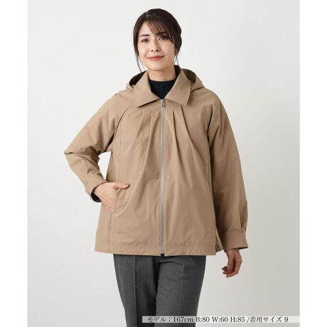 襟元と背面に施された大胆なタックが、ふんわりとした立体的なシルエットを描くカジュアルコートです。 身体のラインを拾いにくいゆったりとしたフォルムが特徴。中わた入りで保温性をキープしながらも、着膨れして見えない絶妙なバランスに。肩周りはラグランスリーブ仕様のため動きやすく、厚手のニットの上からでも窮屈感なく羽織れます。裾にはドローコードが通っており、絞ることで丸みのあるコクーンシルエットへとアレンジが可能。フードは取り外しができ、外せばステンカラーのようなすっきりとした表情に変化します。