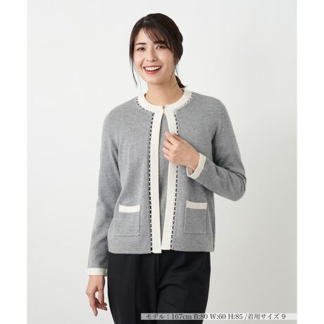 ビジューバイカラーカーディガン【Leilian WHITE LABEL】