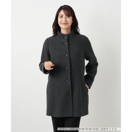 凛としたスタンドカラーが洗練された大人の表情を引き出す、ショート丈のコートです。首元をしっかりと覆う襟の形状は、顔周りをシャープに見せてくれる効果も。フロントにあしらわれた大きめのボタンが、シンプルな中に程よいアクセントとクラシカルな雰囲気を添えています。裾に向かって緩やかに広がるAラインシルエットで、フェミニンな印象に仕上げつつ、厚手のニットの上からでも羽織りやすいゆとりを確保。ヒップが隠れる絶妙な丈感は、パンツスタイルはもちろん、ロングスカートやワンピースともバランスが取りやすく、冬の街歩きから旅行までアクティブなシーンにも寄り添う一着です。