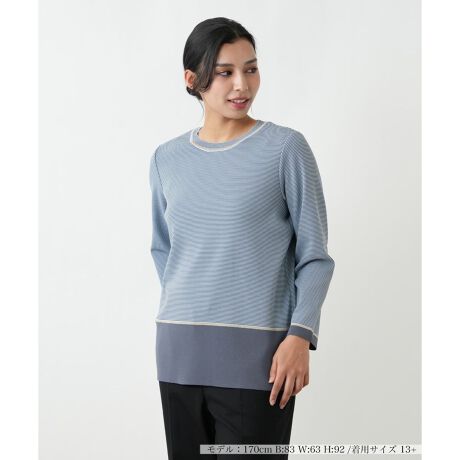 冬のコーディネートを明るく彩る、クラシックなボーダー柄のクルーネックセーター。永遠の定番であるボーダー柄は、一枚で着こなしの主役になり、フレンチシックな雰囲気を演出します。すっきりとしたクルーネックで、カジュアルながらも上品な印象に。デニムと合わせて軽快に、きれいめスカートと合わせてフェミニンにと、合わせるボトムスで様々な表情を楽しめる万能アイテムです。