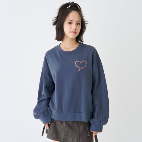 背中の大きなハートロゴが目を引く韓国っぽいトレーナーです! フロントにもさりげなく刺しゅうが入っており、シンプルながらも可愛さがあります。