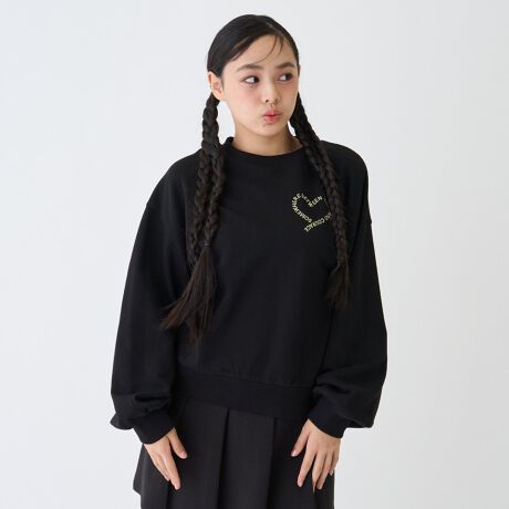 背中の大きなハートロゴが目を引く韓国っぽいトレーナーです! フロントにもさりげなく刺しゅうが入っており、シンプルながらも可愛さがあります。