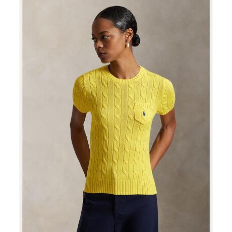コームドコットンを使用したケーブルニットの半袖セーター。胸ポケットに施したシグネチャーのポニー刺繍でアクセントをプラス。・スリムフィット / 腰丈・クルーネック / 半袖、リブニットのカフス / リブニットの裾・左胸にパッチポケット / ポケットにシグネチャーのポニー刺繍・Ralph Laurenのコットン製品を選ぶことで、環境の保護と修復に努めながら、コットン業界が今後も成長を続けられるように支援するBetter Cotton(TM)ミッションへのRalph Laurenの取り組みをサポートすることになります・本商品は物質収支方式に則って材料を調達しているため、全ての製品にBetter Cotton(TM)が含まれない可能性があります。・モデル身長178cm、着用サイズS※商品の色味は、光のあたり具合など諸条件により色感が多少異なって見える場合がございますので予めご了承下さい。 【素材】・本体:綿 100% 装飾部分を除く【生産国】中国