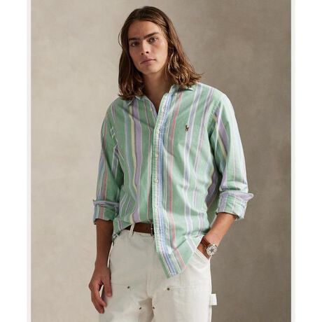 デビュー以来、Poloスタイルの柱であるオックスフォード。着まわし抜群の定番アイテム。ゆったりとしたフィットにカットし、シグネチャーのポニーをマルチカラーで表現したストライプバージョン・クラシックフィット:胸、ウエスト、袖にかけてゆったりとしたカット、低いアームホール・ボタンダウンのポインテッドカラー / ボタン付き前立て・長袖、ボタン付きバレルカフス・快適なフィットと動きやすさを実現する、ボックスプリーツが入ったスプリットバックヨーク・左胸にマルチカラーのシグネチャーのポニー刺繍・モデル身長185cm、着用サイズM※注意:柄の配置は、商品によって異なります。※ラルフ ローレンのシャツは、袖口がまくられた状態で納品され、そのままの状態で保管されている場合があります。デザインや商品特性を活かす為に、あえてこのような工夫をしておりますので、予めご了承ください。 【素材】・本体:綿 100% 装飾部分を除く【生産国】インドネシア