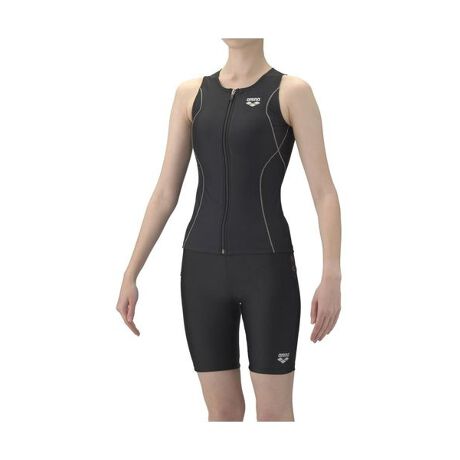 【すらっとセパ】「すっきりしたシルエット・優れたフィット感」をコンセプトにしたフィットネス水着、「すらっとセパ」 シリーズ。アクアビクスや水中ウォーキングなど、健康やリフレッシュのためにプールでのエクササイズを楽しむフィットネススイマーにおすすめ。「すらっとセパ」は株式会社デサントが保有するアリーナブランドと、株式会社ワコールとの共同開発により生まれた製品。上下が分かれたセパレート水着のため、着脱がしやすい。「差し込みパッド」は取り外し可能で、パッドポケット内に収まる設計。脱ぎ着がしやすく、水中でもしっかりフィットする安心感のある仕様。ポイント1:デコルテきれい設計 ポイント2:幅広アンダーゴムにより、バストをしっかりホールド ポイント3:締め付け感が少ないのにウエストすっきり ポイント4:3段階で調整可能な大きめカラースナップ ポイント5:背中の露出を抑えた「カバーバック」 ポイント6:露出を抑えたハーフ丈パンツ ポイント7:一枚あると便利な安心感あるベーシックデザイン