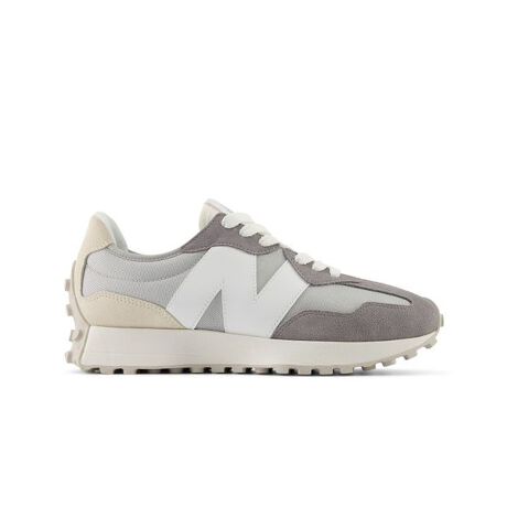 [型番:0286U327FFD01]70年代を席巻した数々のニューバランスのレーシングシューズをアレンジしたレトロなフォルムに、ビッグNロゴを外側だけに配した印象的なルックスで提案する人気モデル「327」のユニセックスライン「U327」から新色が登場。ヘアリースエードとナイロンのコンビネーションアッパーを、ベーシックなカラーで彩った一足。淡いベージュの踵がアクセント。メーカー品番:U327FFD