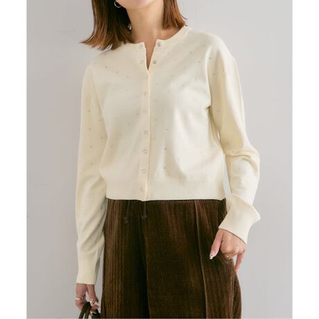ビジューがあしらわれた、ホリデー感漂う華やかなニットカーデ。