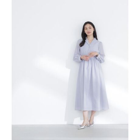 品のある雰囲気を叶える開襟ワンピース。程よく軽さのある素材を使用しており、春らしい抜け感があります。レトロな開襟カラーが、品の良さと女性らしい雰囲気を演出。後ろウエストはゴム仕様なのでゆったりと着ていただけます。<素材>程よい透け感とハリのあるキレイめ素材を使用しています。<詳細>仕様・前ボタン裏地・あり透け感・ややあり / 光沢・なし / 伸縮性・なし 生地の厚さ・普通※モデルの着用画像の場合、光の当たり具合により、実際の色味と異なって見えることがございます。色味は、商品単体の画像をご参照ください。