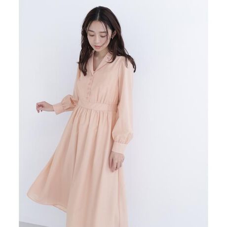 品のある雰囲気を叶える開襟ワンピース。程よく軽さのある素材を使用しており、春らしい抜け感があります。レトロな開襟カラーが、品の良さと女性らしい雰囲気を演出。後ろウエストはゴム仕様なのでゆったりと着ていただけます。<素材>程よい透け感とハリのあるキレイめ素材を使用しています。<詳細>仕様・前ボタン裏地・あり透け感・ややあり / 光沢・なし / 伸縮性・なし 生地の厚さ・普通※モデルの着用画像の場合、光の当たり具合により、実際の色味と異なって見えることがございます。色味は、商品単体の画像をご参照ください。