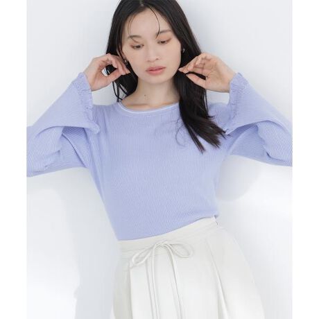 身頃はすっきりとしたリブ編みで、女性らしいフィット感と上品なラインを演出してくれるニット。袖口はフレアカフス仕様で、手元に軽やかな動きをプラスします。袖先には配色のレース編みをあしらい、華やかなアクセントに。襟ぐりにも配色ラインを入れることで、統一感のあるデザインポイントを付けています。<素材>身頃はリブ編みです。<詳細>仕様・開閉なし裏地・なし透け感・なし / 光沢・なし / 伸縮性・あり 生地の厚さ・普通※モデルの着用画像の場合、光の当たり具合により、実際の色味と異なって見えることがございます。色味は、商品単体の画像をご参照ください。