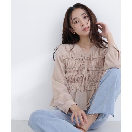フロントリボンと身頃のシャーリングがポイントのペプラムブラウス。フェミニンで女性らしい印象を演出し、スタイリングの主役になります。柔らかい素材なので着心地も良く、デイリーからお出かけまで幅広いシーンに活躍してくれます。<素材>軽やかでシボ感のある楊柳素材を使用し、柔らかくふんわりとした風合いです。<詳細>仕様・後ろボタン裏地・あり透け感・ややあり / 光沢・なし / 伸縮性・なし 生地の厚さ・薄手※モデルの着用画像の場合、光の当たり具合により、実際の色味と異なって見えることがございます。色味は、商品単体の画像をご参照ください。