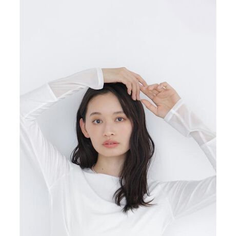 一枚でもインナーでも活躍してくれる、着回し力の高いカットソー。袖口にシアー生地をドッキングしたデザインです。少し長めの袖丈にし、袖口をくしゅっとたるませて着ると、ニュアンスのあるシルエットが完成。ジャケットの袖口からシアー生地をのぞかせると上品でトレンド感のあるレイヤードスタイルを楽しめます。<素材>身頃に柔らかな天竺カットソー、袖先にシアー生地を使用しています。<詳細>仕様・開閉なし裏地・なし透け感・あり / 光沢・なし / 伸縮性・あり 生地の厚さ・普通※モデルの着用画像の場合、光の当たり具合により、実際の色味と異なって見えることがございます。色味は、商品単体の画像をご参照ください。
