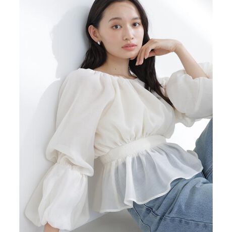 NBB人気アイテムが素材をアップデートして再登場!これからの季節にぴったりな新色が仲間入りしました!襟ぐりにゴムが入っているのでセットインとオフショルダーの2wayデザインで着られます。袖はボリュームのあるバルーンスリーブがポイント。後ろウエストもゴム仕様なのでフィットしながら、リラックスした着心地です。<素材>しなやかで軽さのあるオーガンジー素材を使用しています。<詳細>仕様・開閉なし裏地・あり透け感・ややあり / 光沢・ややあり / 伸縮性・なし 生地の厚さ・薄手※モデルの着用画像の場合、光の当たり具合により、実際の色味と異なって見えることがございます。色味は、商品単体の画像をご参照ください。