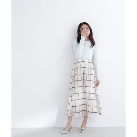 大柄チェックが一枚で主役級の存在感を放つスカート。メッシュ素材にチェックプリントを施しているため軽やかに着用いただけます。後ろウエストはゴム仕様なのでストレスフリーなはき心地。ボリュームのあるフレアシルエットは、コンパクトなニットと合わせるのがおすすめです。<素材>メッシュ素材にチェックプリントを入れています。<詳細>仕様・後ろファスナー裏地・あり透け感・ややあり / 光沢・なし / 伸縮性・なし 生地の厚さ・普通※モデルの着用画像の場合、光の当たり具合により、実際の色味と異なって見えることがございます。色味は、商品単体の画像をご参照ください。