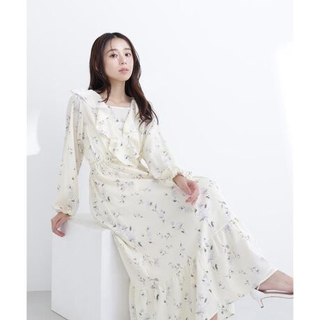 上品な色使いのフラワープリントが甘くなりすぎず、デイリーにも特別な日にも活躍してくれるワンピース。軽やかに揺れるラッフルディテールが女性らしい動きを生み、1枚で存在感のあるスタイルが完成します。カラージャケットを羽織ると、より洗練された印象に見せてくれます。<素材>上品な凹凸感のあるとろみ生地を使用しています。<詳細>仕様・開閉なし裏地・あり透け感・ややあり / 光沢・なし / 伸縮性・なし 生地の厚さ・普通※モデルの着用画像の場合、光の当たり具合により、実際の色味と異なって見えることがございます。色味は、商品単体の画像をご参照ください。