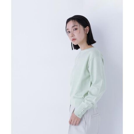 フロントにピンタックラインを効かせたドルマンライクなシルエットのニットプルオーバー。襟はすっきりとしたボートネックデザインです。袖口に付けたライトゴールドカラー釦がきらっとアクセント。程よく短めの着丈感なのでアウトスタイルも様になるデザインです。マシンウォッシャブル可能なのでご自宅で扱いやすく、UVカット機能も備えた素材は、これからの季節に活躍してくれます。<素材>キレイな目面の糸を使用し、天竺編みで編み立てています。<詳細>仕様・開閉なし裏地・なし透け感・なし / 光沢・なし / 伸縮性・あり 生地の厚さ・普通※モデルの着用画像の場合、光の当たり具合により、実際の色味と異なって見えることがございます。色味は、商品単体の画像をご参照ください。