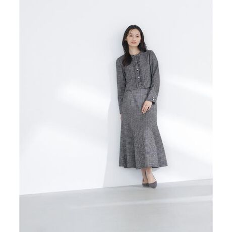 上品なツイード素材を使用したマーメイドスカート。程よいハイウエストと縦の切り替えでスタイルアップを期待できます。裾に向かって広がるマーメイドラインが、揺れ感のあるシルエットを演出。同素材のジャケットとのセットアップもおすすめです。さり気なくラメ糸が織り込まれた品のある春ツイードを使用しています。<素材>NBBオリジナルのツイード素材を使用しています。<詳細>仕様・後ろファスナー裏地・あり透け感・なし / 光沢・なし / 伸縮性・なし 生地の厚さ・普通<シリーズ>■ジャケット[品番:0176155154]※モデルの着用画像の場合、光の当たり具合により、実際の色味と異なって見えることがございます。色味は、商品単体の画像をご参照ください。