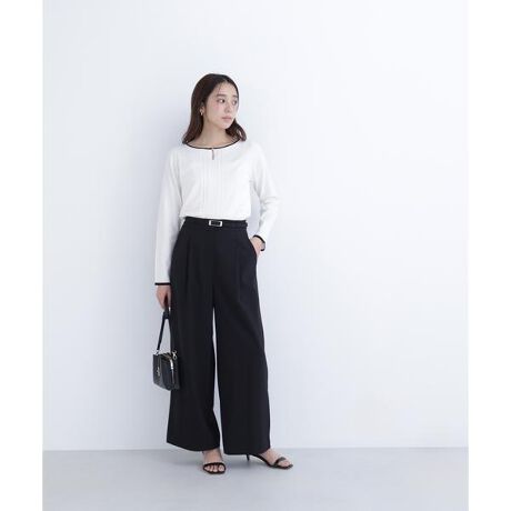 程よくとろみのある素材を使用したベルテッドワイドパンツ。ワイドパンツながら程よいとろみと落ち感があるので、さらっと軽やかに着ていただけます。ライトゴールドカラーのバックルがきらっとポイント。ベルトでウエストマークができるためスタイルアップ効果を期待できます。後ろウエストはゴム仕様でストレスフリーなはき心地です。<素材>程よいとろみと落ち感のある合繊素材を使用しています。<詳細>仕様・前ファスナー裏地・なし透け感・なし / 光沢・なし / 伸縮性・なし 生地の厚さ・普通※モデルの着用画像の場合、光の当たり具合により、実際の色味と異なって見えることがございます。色味は、商品単体の画像をご参照ください。