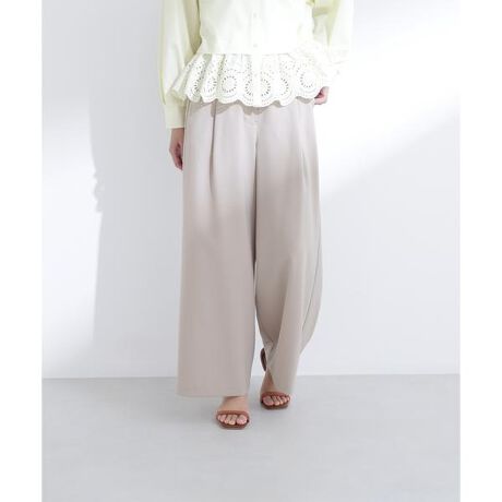 程よくとろみのある素材を使用したベルテッドワイドパンツ。ワイドパンツながら程よいとろみと落ち感があるので、さらっと軽やかに着ていただけます。ライトゴールドカラーのバックルがきらっとポイント。ベルトでウエストマークができるためスタイルアップ効果を期待できます。後ろウエストはゴム仕様でストレスフリーなはき心地です。<素材>程よいとろみと落ち感のある合繊素材を使用しています。<詳細>仕様・前ファスナー裏地・なし透け感・なし / 光沢・なし / 伸縮性・なし 生地の厚さ・普通※モデルの着用画像の場合、光の当たり具合により、実際の色味と異なって見えることがございます。色味は、商品単体の画像をご参照ください。
