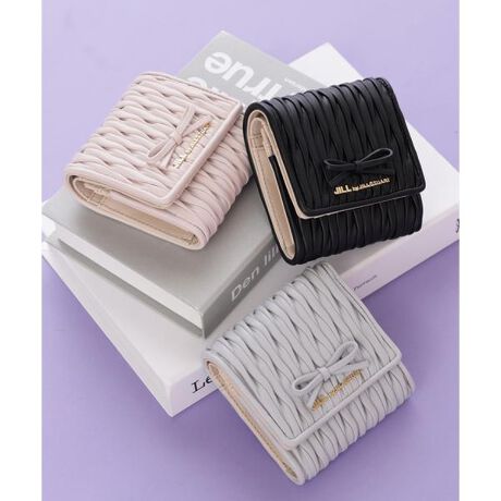 JILL by JILL STUART「ミニリボンパフィシリーズ」三つ折り財布。エンボス加工のリッチな雰囲気とミニリボンがポイントです。ころんとしたフォルムが可愛らしく、バッグの中にコンパクトに収まるサイズ感が魅力。カード・お札・コインケースがひと目でかわる三つ折り仕様。同シリーズ、フラグメントケース(店舗商品番号125-6187032)・二つ折りウォレット(125-6187031)もございます。※撮影時照明の関係により、色味が違って見える場合がございます。またパソコン・スマートフォンなどの環境により、若干製品と画像のカラーが異なる場合もございます。予めご了承ください。商品の色味は、商品単品画像をご参照下さい。※商品画像はサンプルのため、色味やサイズ等の仕様に変更がある場合がございますので、予めご了承ください。