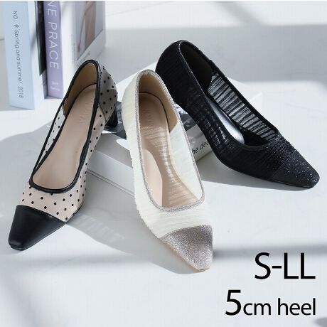 【26春夏新作】シアーバイカラープレートヒールパンプス