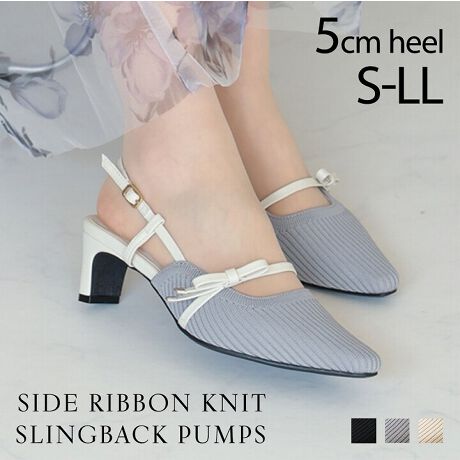 【26春夏新作】サイドリボンニットスリングバックパンプス