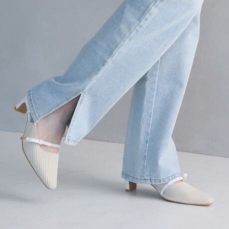 【26春夏新作】サイドリボンニットスリングバックパンプス