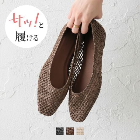 【26春夏新作】サッ!と履けるシアーラフィアメッシュフラットシューズ