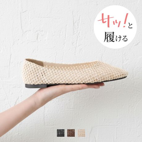 【26春夏新作】サッ!と履けるシアーラフィアメッシュフラットシューズ