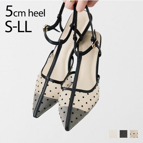 ・透け感が涼しげでフェミニンな印象のシアーチュールストラップパンプス!
