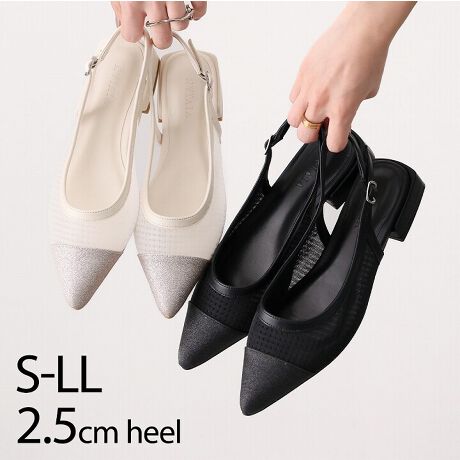 ・キラキラのグリッター×上品なチュールメッシュの異素材の切り替えデザインがポイントのスリングバックパンプス!