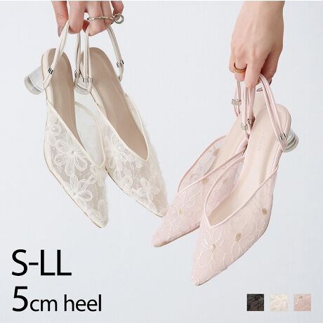 【26春夏新作】シアーフラワーレース2WAYクリアヒールパンプス