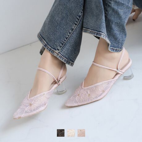 【26春夏新作】シアーフラワーレース2WAYクリアヒールパンプス
