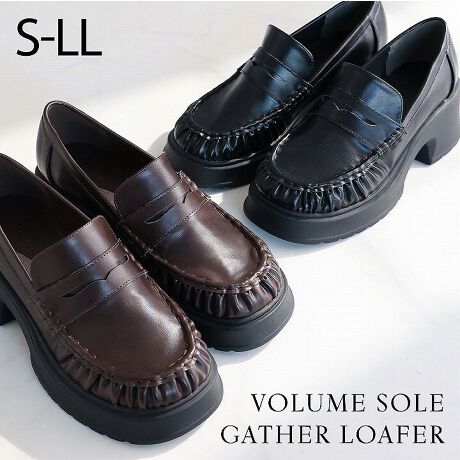 ・定番のコインローファーも、くしゅくしゅのギャザーディテール×厚底のトラックソールで盛れる&映えるアイテムに!
