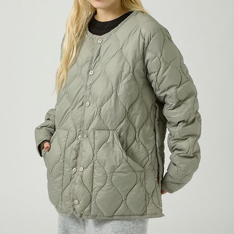 ミリタリーテイストを落とし込んだクルーネックデザインのダウンジャケット。