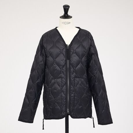 ミリタリーテイストを落とし込んだVネックシルエットのダウンジャケット。