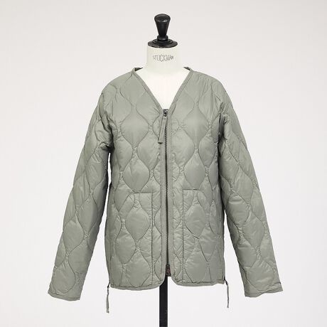 ミリタリーテイストを落とし込んだVネックシルエットのダウンジャケット。
