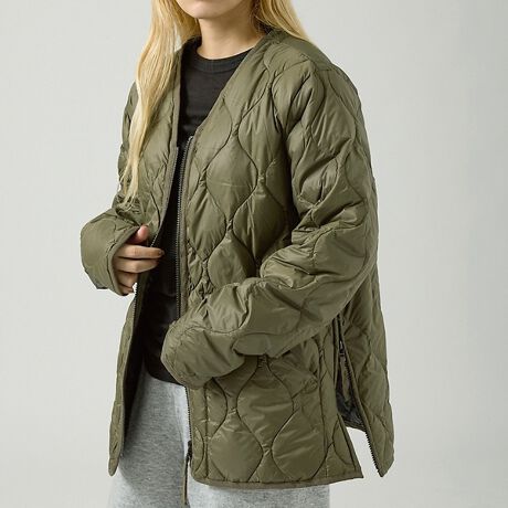 ミリタリーテイストを落とし込んだVネックシルエットのダウンジャケット。