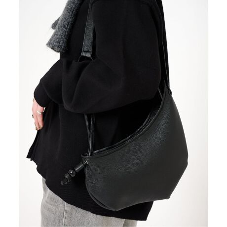 シンプルながらも洗練された印象を与える、ハーフムーン型のショルダーバッグ。