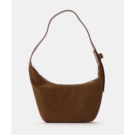 シンプルながらも洗練された印象を与える、ハーフムーン型のショルダーバッグ。