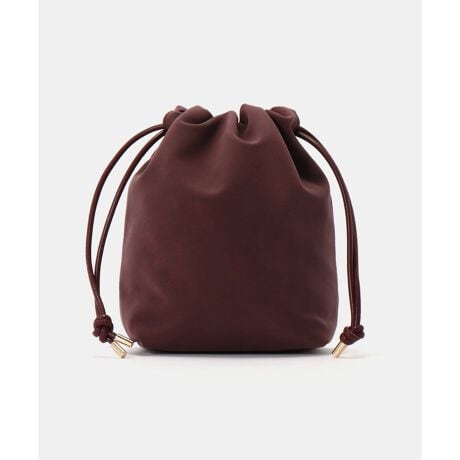 紐先端に金具が付いた上品なデザインになり、コーディネートのアクセントにぴったりです。巾着型にもできる2WAY仕様です。