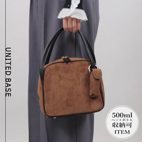 トレンドのスエードライク素材を使用したミニボストンバッグ。