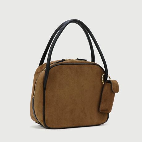 トレンドのスエードライク素材を使用したミニボストンバッグ。